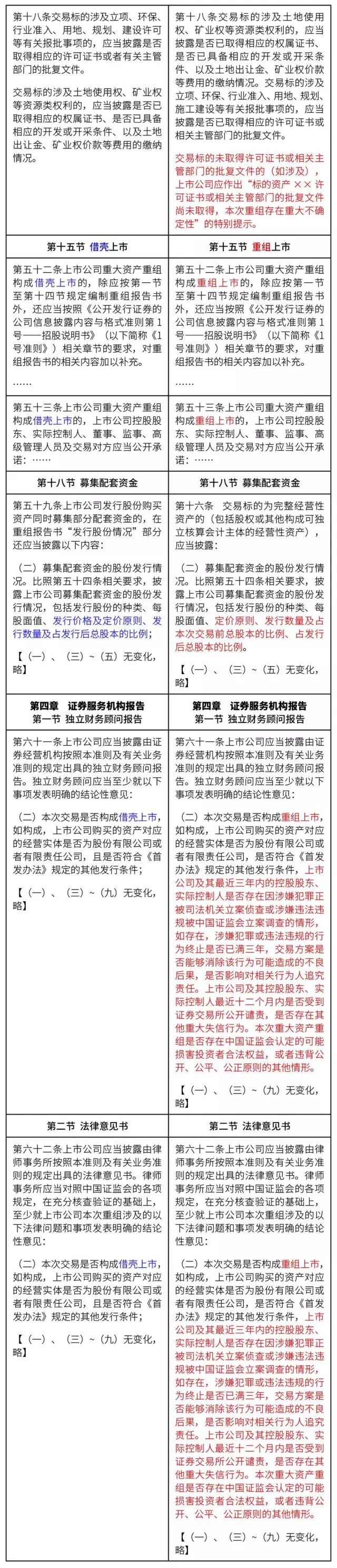 四是配合《上市公司重大资产重组管理办法》(以下简称《重组办法》)修改,规范重组上市信息披露。