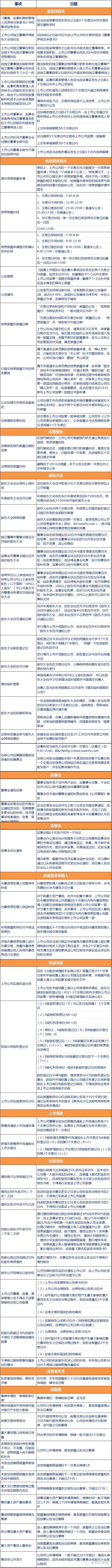 上市公司重大时间节点及监管规定